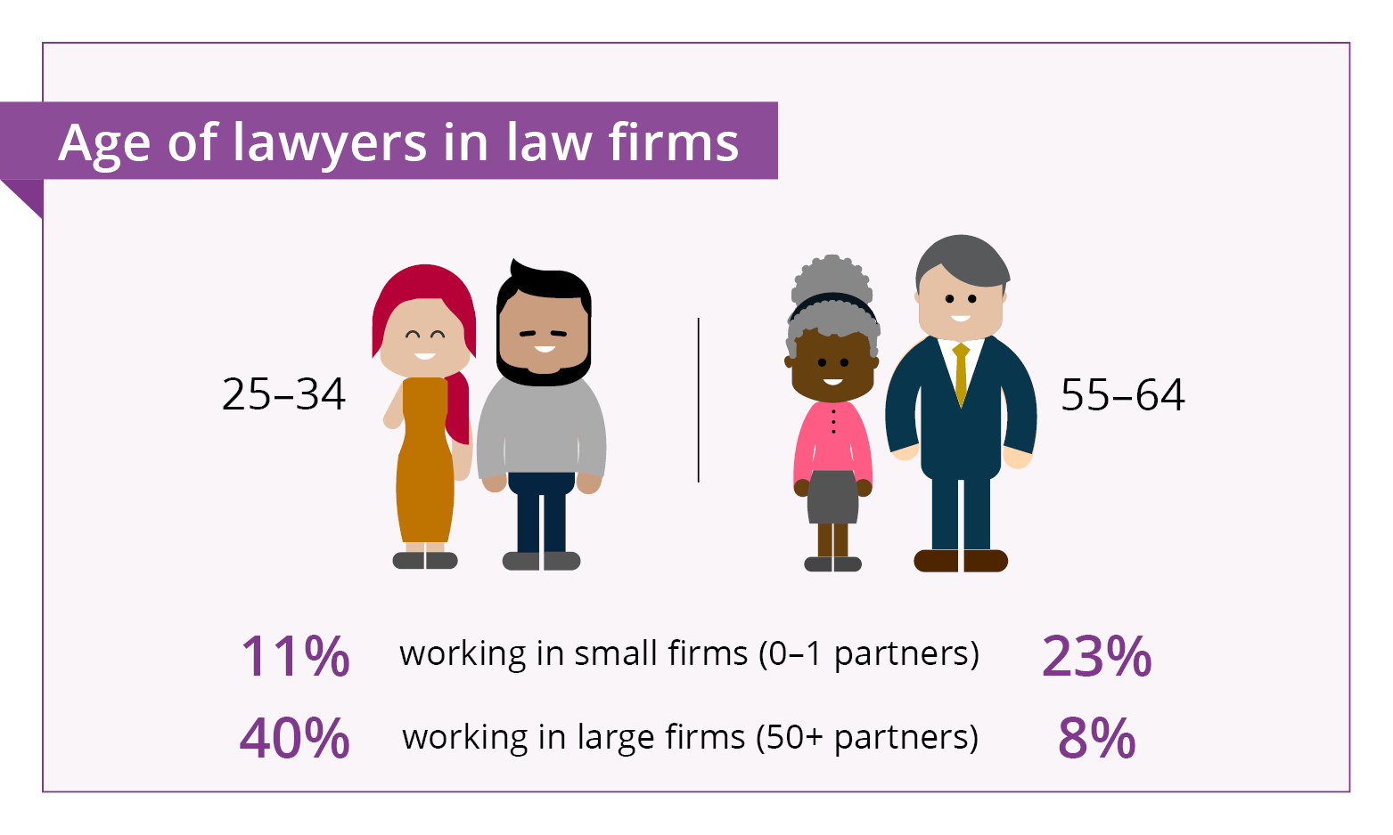 Generally, there was a higher proportion of lawyers from the younger age groups in the larger firms, and vice versa for the older age groups in the smaller firms.