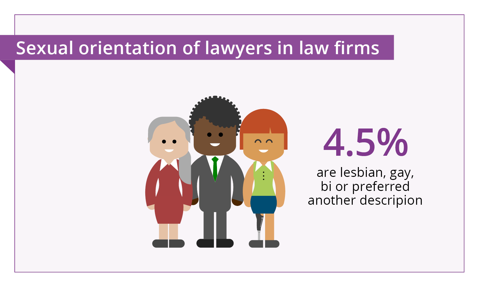 - 4.9% of lawyers in firms with 10–50 partners were LGB